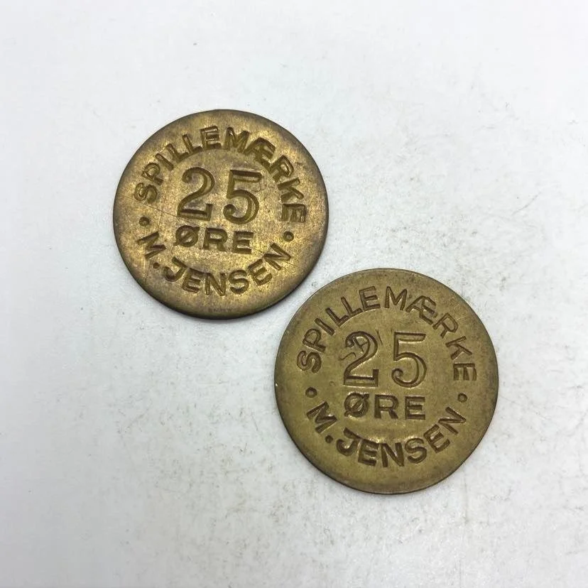 Lot #107: December 10. aug. Skrevet af Jan Ibsen Nielsen Spillemærker Diameter: 27 mmMateriale: messingBeskrivelse:ES 836 - JS 75442 stk.(tyk og tynd blanket) Jan Ibsen Nielsen