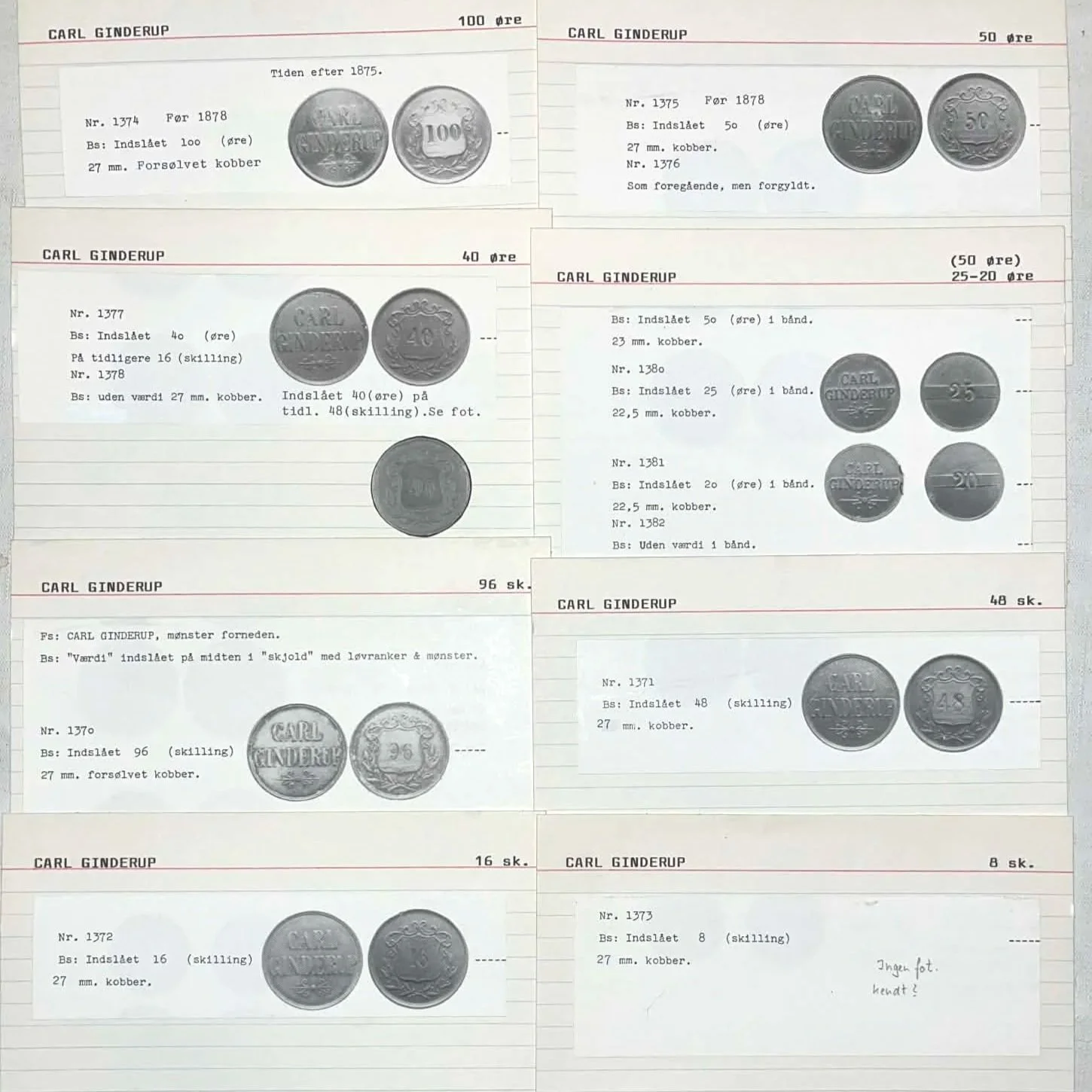 Nogle med beskrivelser på bagside.