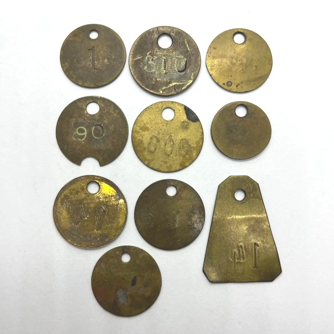 Lot # 30: September 4. maj Skrevet af Jan Ibsen Nielsen Værktøjstegn Diameter: Materiale: messingOpråbspris: Kr. 50,-Sælger: 30Beskrivelse:10 stk. værktøjstegn. Jan Ibsen Nielsen